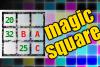 The aim is to place the some numbers from the list (5, 6, 11, 19, 20, 25, 26, 27, 28, 32) into the empty squares and squares marked with A, B an C. Sum of each row and column should be equal. All the numbers of the magic square must be different. Find values for A, B, and C. Solution is A-B+C. Correct answers: 0