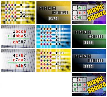 The aim is to place the some numbers from the list (5, 6, 8, 20, 21, 23, 24, 65, 66, 68, 97) into the empty squares and squares marked with A, B an C. Sum of each row and column should be equal. All the numbers of the magic square must be different. Find values for A, B, and C. Solution is A-B-C. Correct answers: 0