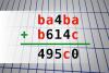 If ba4ba + b614c = 495c0 find number abc. Multiple solutions may exist. Correct answers: 0