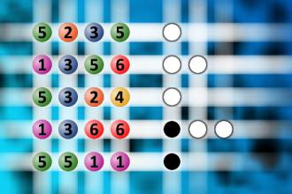 The computer chose a secret code (sequence of 4 digits from 1 to 6). Your goal is to find that code. Black circles indicate the number of hits on the right spot. White circles indicate the number of hits on the wrong spot.