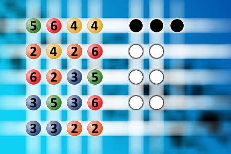 The computer chose a secret code (sequence of 4 digits from 1 to 6). Your goal is to find that code. Black circles indicate the number of hits on the right spot. White circles indicate the number of hits on the wrong spot.Correct answers: 0