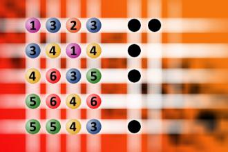 The computer chose a secret code (sequence of 4 digits from 1 to 6). Your goal is to find that code. Black circles indicate the number of hits on the right spot. White circles indicate the number of hits on the wrong spot.Correct answers: 0