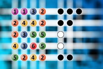 The computer chose a secret code (sequence of 4 digits from 1 to 6). Your goal is to find that code. Black circles indicate the number of hits on the right spot. White circles indicate the number of hits on the wrong spot.Correct answers: 0