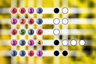 The computer chose a secret code (sequence of 4 digits from 1 to 6). Your goal is to find that code. Black circles indicate the number of hits on the right spot. White circles indicate the number of hits on the wrong spot.Correct answers: 1