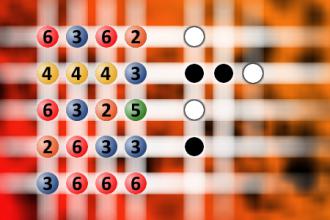 The computer chose a secret code (sequence of 4 digits from 1 to 6). Your goal is to find that code. Black circles indicate the number of hits on the right spot. White circles indicate the number of hits on the wrong spot.Correct answers: 0