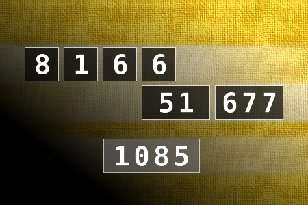 NUMBERMANIA: Calculate the number 1085 using numbers [8, 1, 6, 6, 51, 677] and basic arithmetic operations (+, -, *, /). Each of the numbers can be used only once.Correct answers: 0