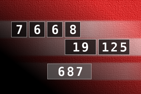 NUMBERMANIA: Calculate the number 687 using numbers [7, 6, 6, 8, 19, 125] and basic arithmetic operations (+, -, *, /). Each of the numbers can be used only once.Correct answers: 0
