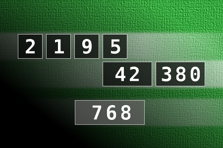 NUMBERMANIA: Calculate the number 768 using numbers [2, 1, 9, 5, 42, 380] and basic arithmetic operations (+, -, *, /). Each of the numbers can be used only once.Correct answers: 1