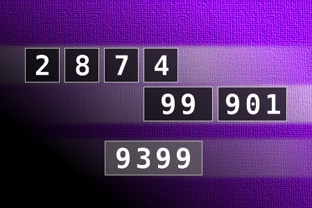 NUMBERMANIA: Calculate the number 9399 using numbers [2, 8, 7, 4, 99, 901] and basic arithmetic operations (+, -, *, /). Each of the numbers can be used only once.Correct answers: 0