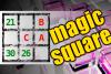 The aim is to place the some numbers from the list (1, 3, 6, 11, 14, 21, 23, 26, 28, 30, 33, 60, 67) into the empty squares and squares marked with A, B an C. Sum of each row and column should be equal. All the numbers of the magic square must be different. Find values for A, B, and C. Solution is A*B*C. Correct answers: 14