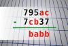 If 795ac - 7cb37 = babb find number abc. Multiple solutions may exist. Calculate the number 3430